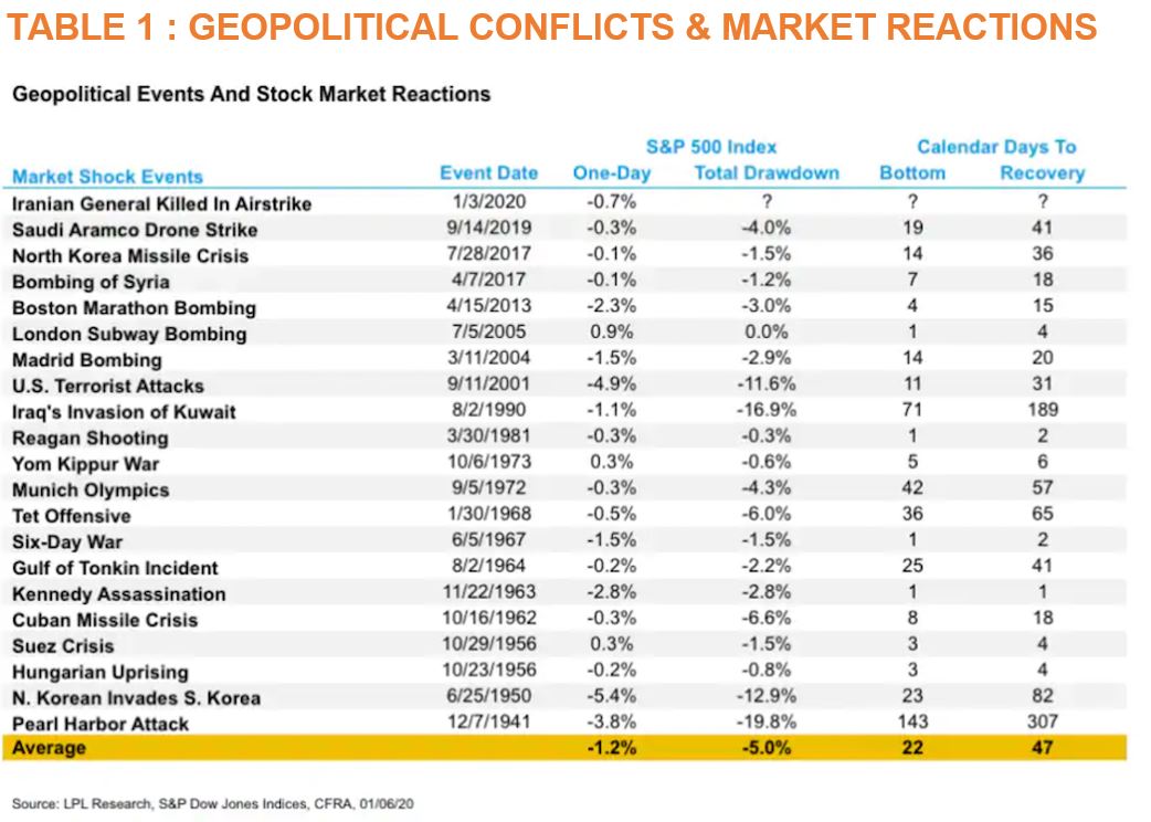 Fact 2: Markets recover even after a major conflict as shown in TABLE 1.